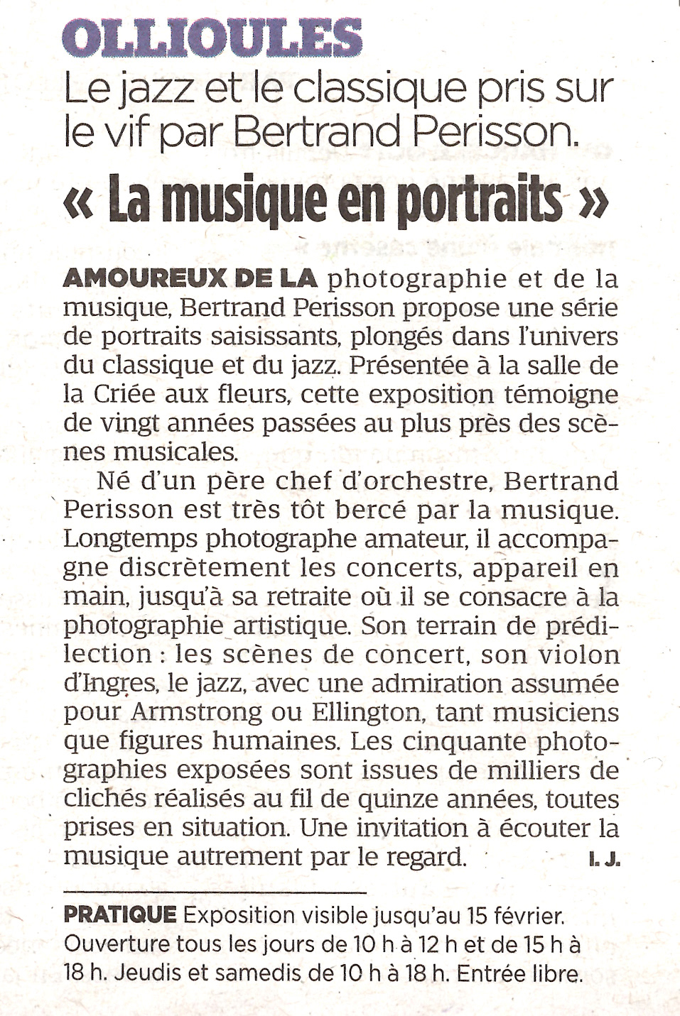 La salle de la Criée aux Fleurs à Ollioule. Exposition Musiques en portraits du 4 au 15 février 2026